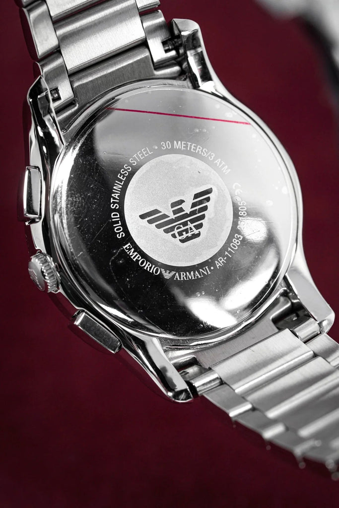 Emporio Armani Valente Chronograph Quartz Black Dial Silver Steel Strap Watch For Men - AR11083