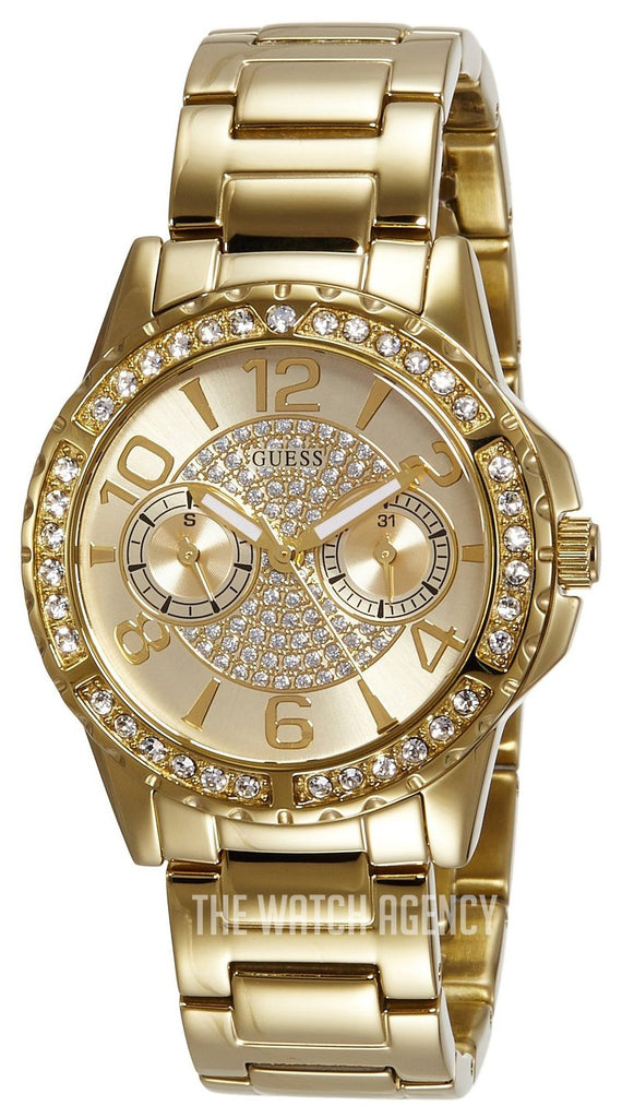 Guess Sassy Analog Quartz Gold Dial Gold Steel Strap Watch For Women - W0705L2