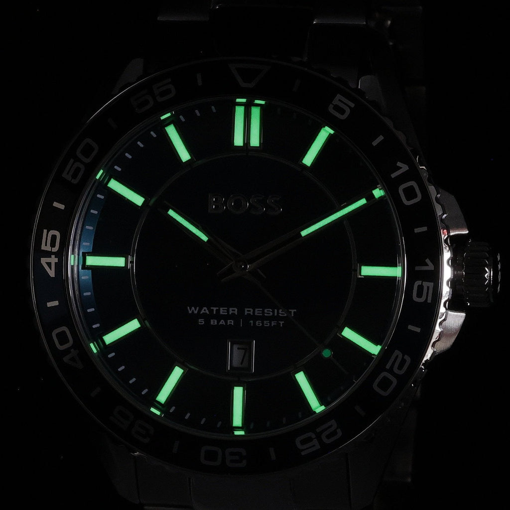Hugo Boss Runner 3H Green Dial Silver Steel Strap Watch for Men - 1514208