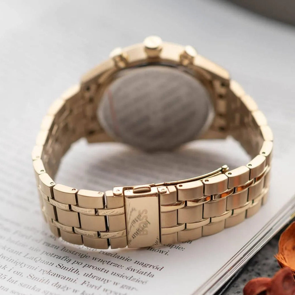 Hugo Boss Skytraveller Chronograph Black Dial Gold Steel Strap Watch for Men - 1514152