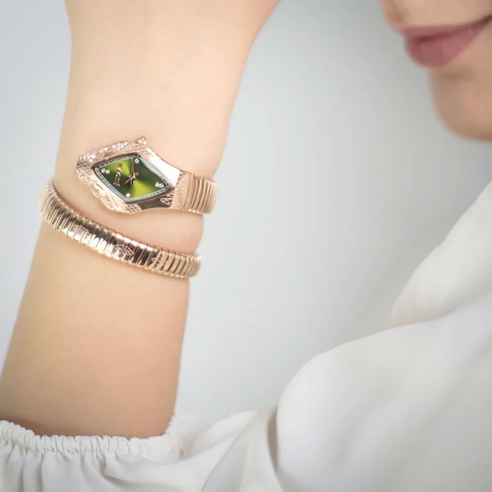 Elevate your wrist game with the Just Cavalli Ferocious Green Dial watch, where bold style meets timeless elegance. The striking green dial commands attention while the rose gold and steel combination delivers a sophisticated contrast that works for any occasion. Crafted with precision and designed for the modern woman who refuses to blend in, this timepiece transforms your everyday look into a fashion statement. The durable steel strap ensures comfort and longevity, making it the perfect investment piece for those who appreciate quality craftsmanship and distinctive design. Make every moment count with a watch that's as fearless as you are.