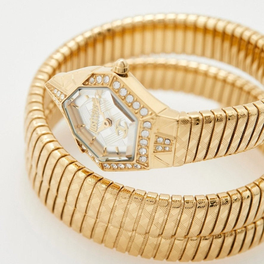 Just Cavalli Mesmerizing White Dial Gold Steel Strap Watch for Women - JC1L304M0025