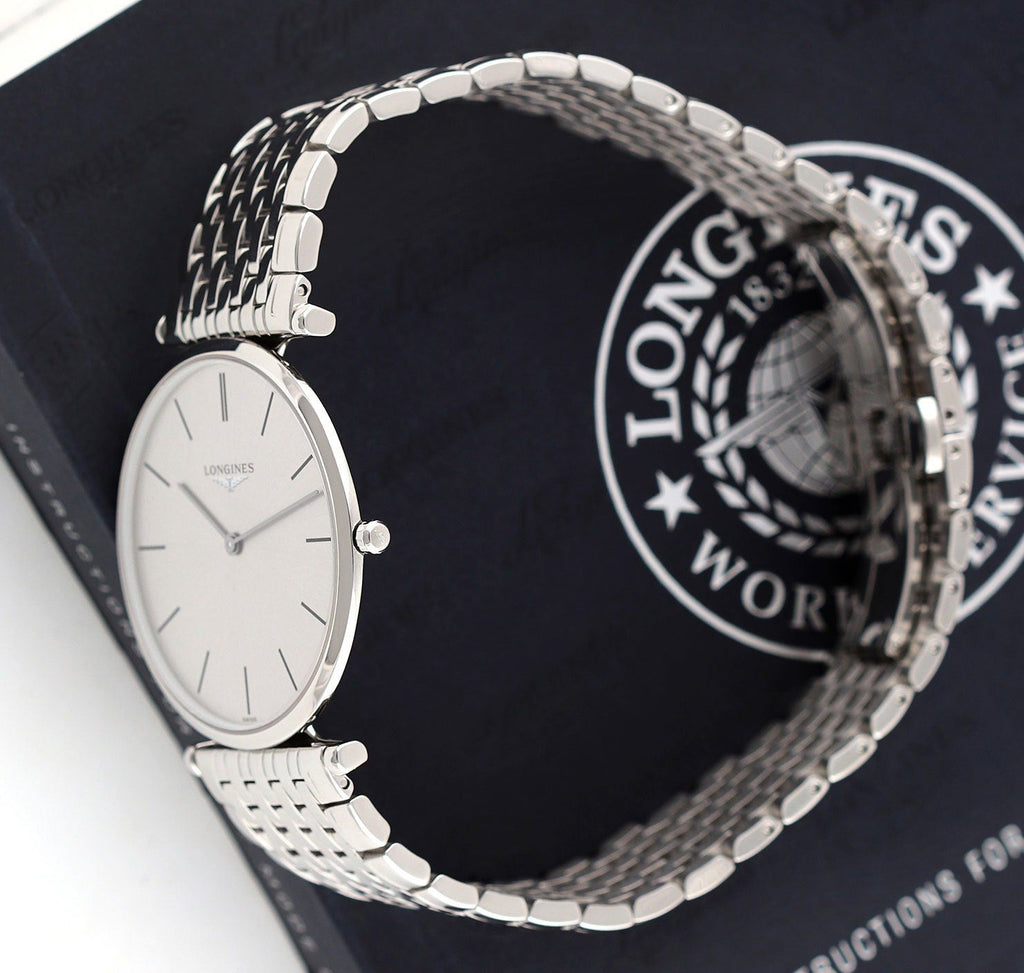 Longines La Grande Classique De Longines 36 mm watch. Model reference: L4.755.4.72.6. Stainless steel case. Sunray silver dial. Quartz movement. Stainless steel bracelet. This model also known as: L4/755/4/72/6, L4-755-4-72-6, L47554726. This Longines watch comes in original packaging with set of documents and 2 years warranty.