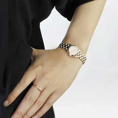 Gold-tone stainless steel case with a gold-tone stainless steel bracelet. Fixed gold-tone bezel. Champagne dial with gold-tone hands and by marc jacobs hour markers. Dial Type: Analog. Quartz movement. Scratch resistant mineral crystal. Pull / push crown. Solid case back. Case size: 20 mm. Case thickness: 8 mm. Round case shape. Band width: 10 mm. Band length: 7.5 inches. Fold over with push button release clasp. Water resistant at 50 meters / 165 feet. Functions: hour, minute, second. Casual watch style. Marc by Marc Jacobs Henry Dinky Champagne Dial Gold-tone Ladies Watch MBM3199.