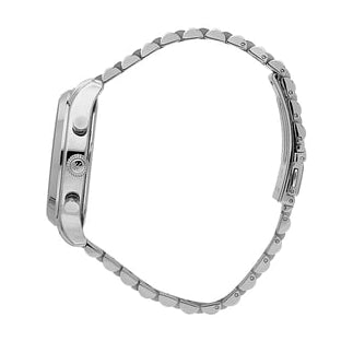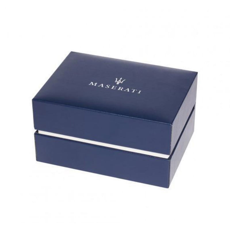 This Maserati watch has a case made of stainless steel with a diameter of 42 mm and is fitted with a metal band. Inside the case lies a Miyota movement and the watch features a Mineral crystal.