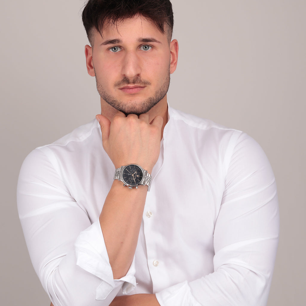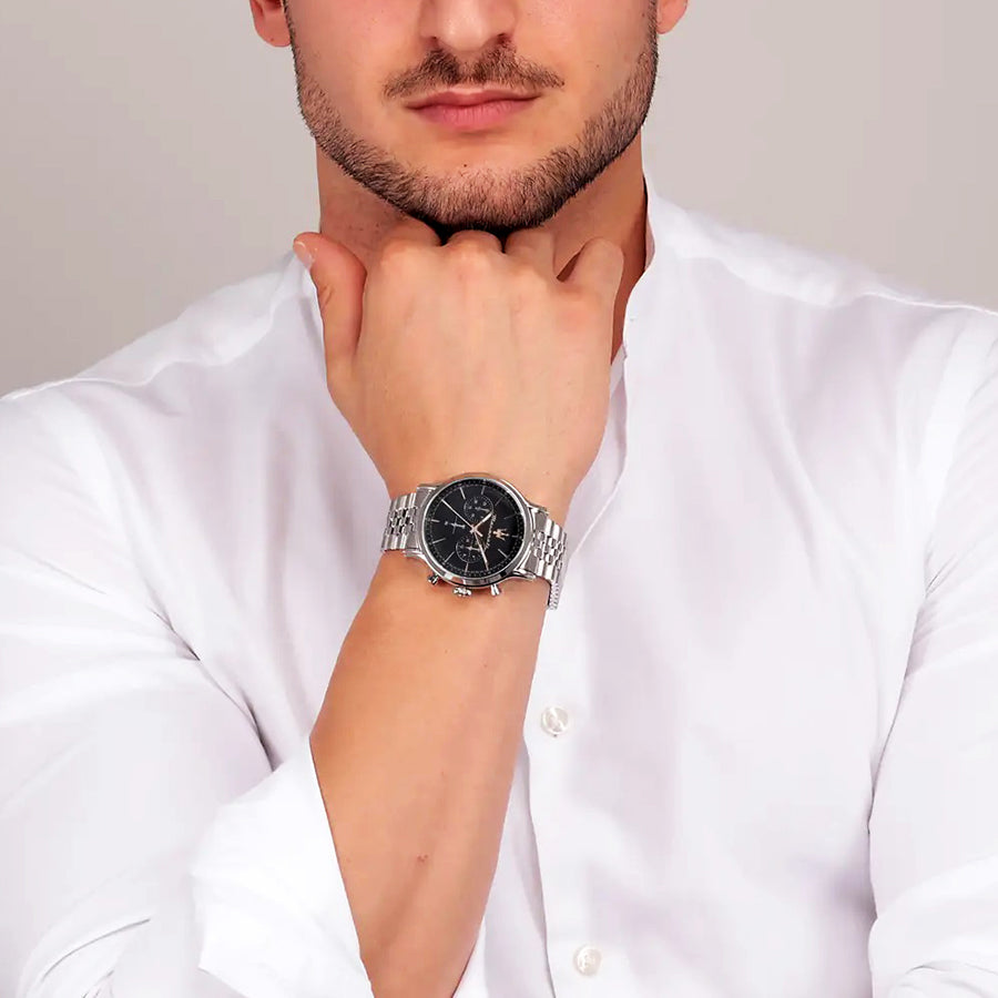 Experience luxury and sophistication with the Maserati Epoca Chronograph Watch. With its sleek black dial, silver steel strap, and precise chronograph functionality, this watch combines style and practicality perfectly. Be confident and stand out with this stunning timepiece on your wrist.