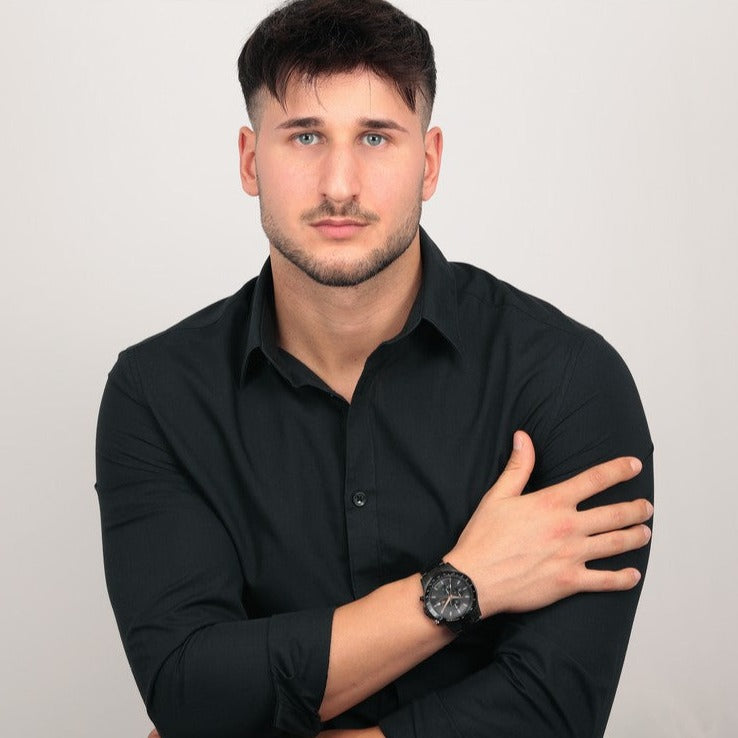 The latter is topped with a black tachymeter bezel . To protect the dial from the knocks that your daily life could cause, a mineral glass is placed above it. You can control the hands as well as the date window thanks to the winding crown at 3 o'clock. The latter is surrounded by two push buttons positioned at 2 and 4 o'clock which will serve you for the chronograph function . Finally, the screwed case back gives this sports watch a water resistance of 10 ATM .