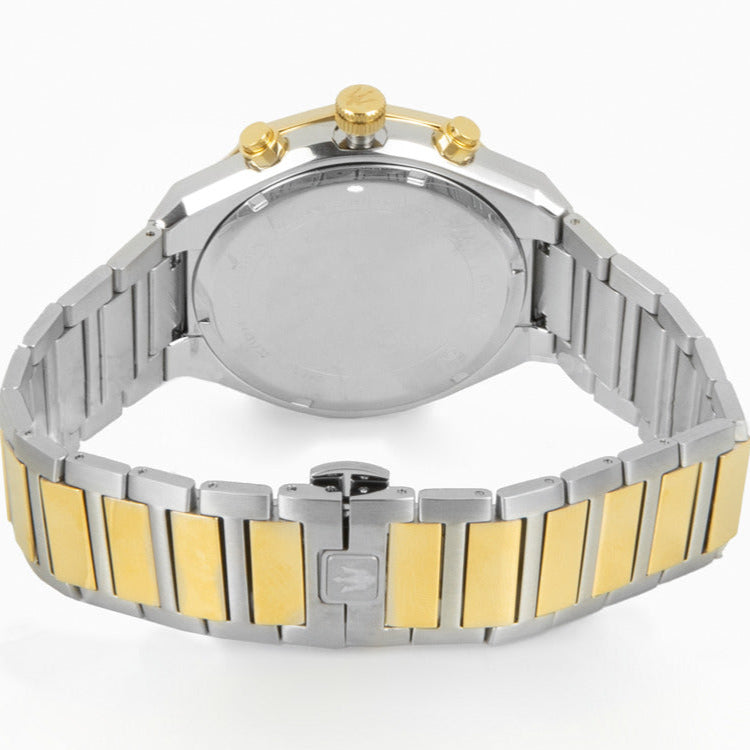 Maserati Stile Chronograph White Dial Two Tone Steel Strap Watch For Men - R8873642009