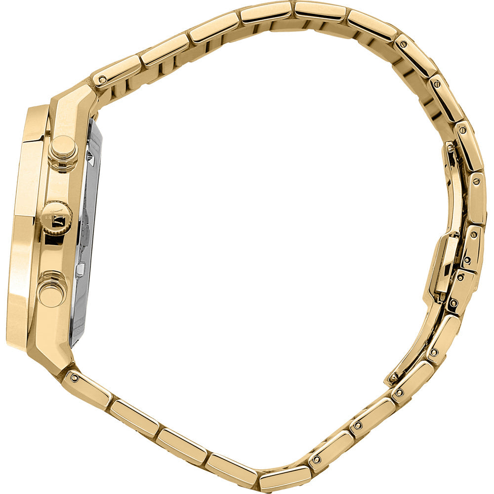 Maserati Stile Chronograph R8873642001 is made of golden stainless steel. Black dial contains a characteristic trident, stopwatch up to 30 minutes, date of the month of the month and daily time. In addition, it is secured with a mineral slide for protection against external damage. The water resistance of the model is 100 m, which is why surface swimming is not a threat. The product works based on the Miyota JS25 quartz mechanism. When buying, the watch gets a company packaging and a guarantee lasting two years from the date of purchase.