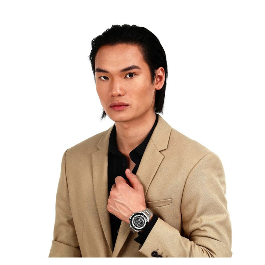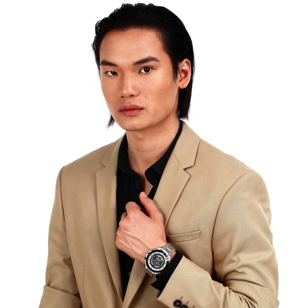 - The case of this model is made of brushed stainless steel and measures 45mm in diameter.