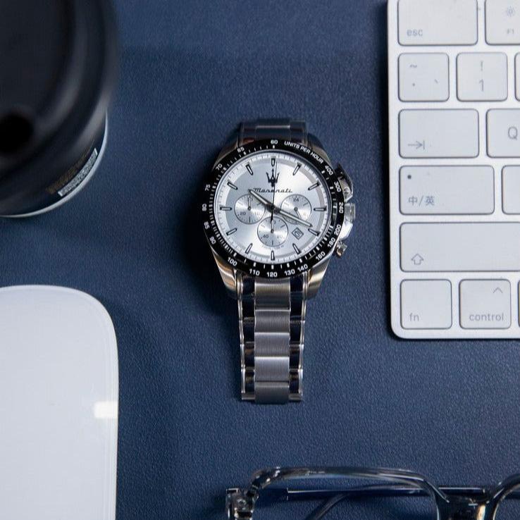 Maserati Traguardo Chronograph Silver Dial Silver Steel Strap Watch For Men - R8873612049