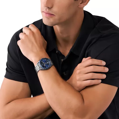 Michael Kors Accelerator Chronograph Blue Dial Grey Steel Strap Watch For Men - MK9111