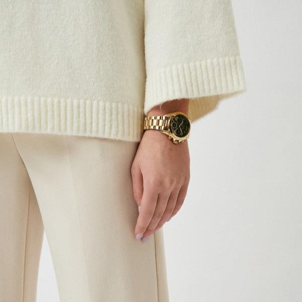 Our 36mm Bradshaw watch features a gold-tone case and bracelet with a gorgeous green dial. Featuring Roman Numeral accents on the dial, this chronograph watch is perfect for everyday-wear.