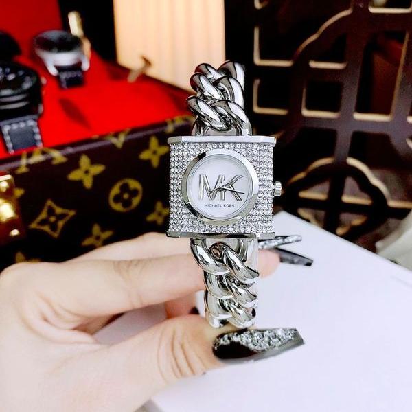 Michael Kors Chain Lock Pave Silver Dial Silver Steel Strap Watch For Women - MK4718