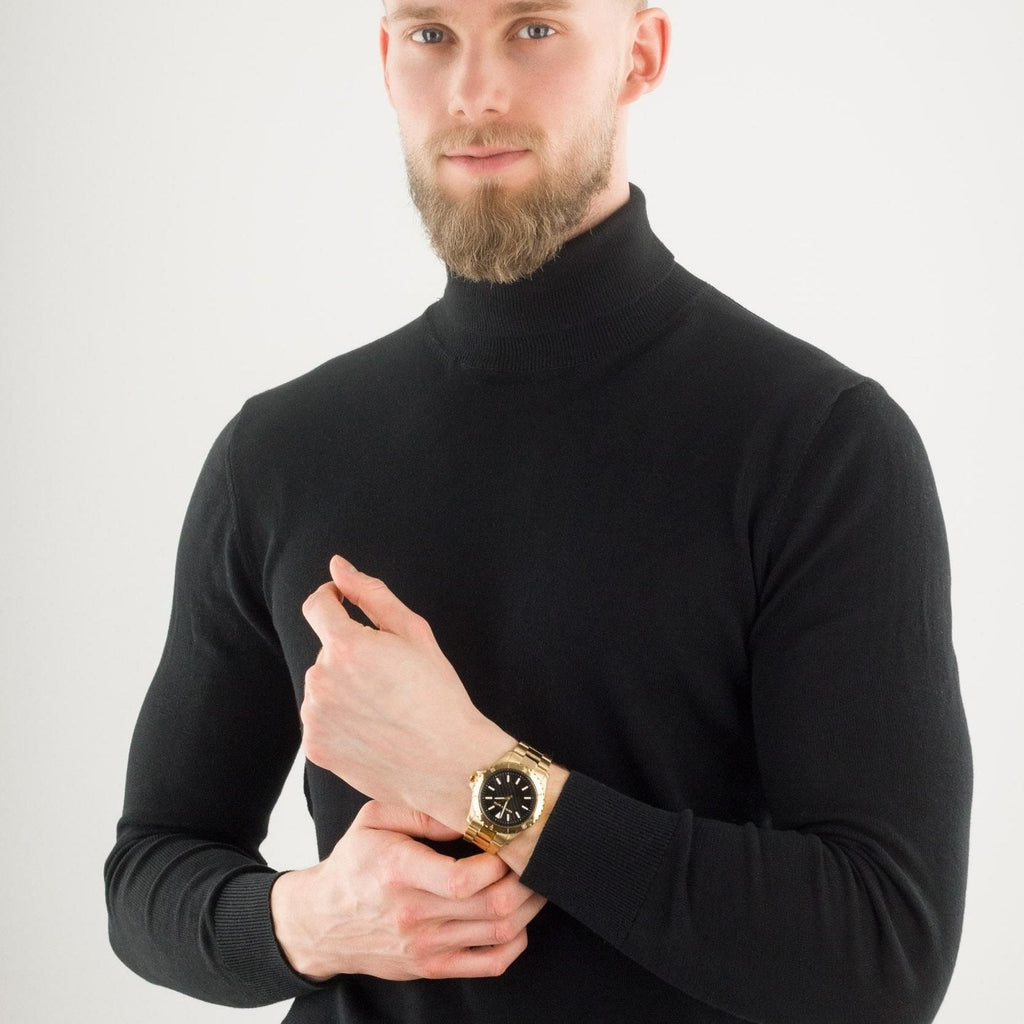 Michael Kors Everest Three-Hand Black Dial Gold Steel Strap Watch For Men - MK9078