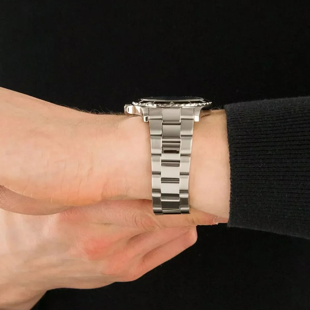 Watch Band: Silver stainless steel bracelet band; 22mm band width; links can be removed for a customized fit