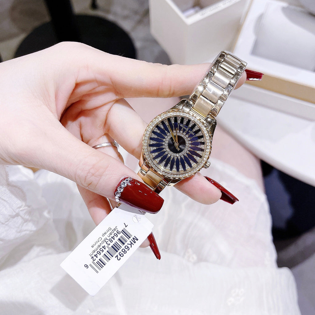 Michael Kors Layton Quartz Black Dial Gold Steel Strap Watch For Women - MK6892