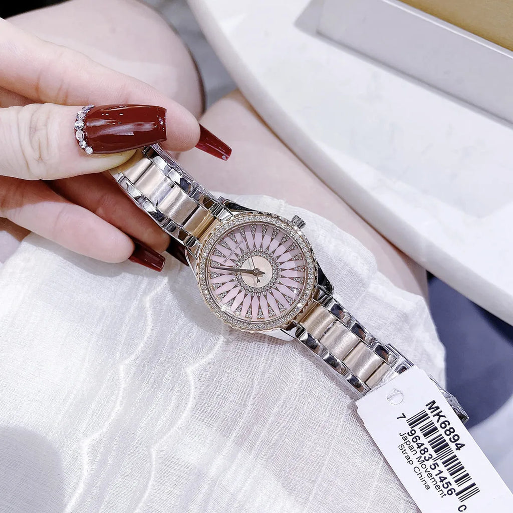 Michael Kors Layton Three Hand Pink Dial Two Tone Steel Strap Watch For Women - MK6894