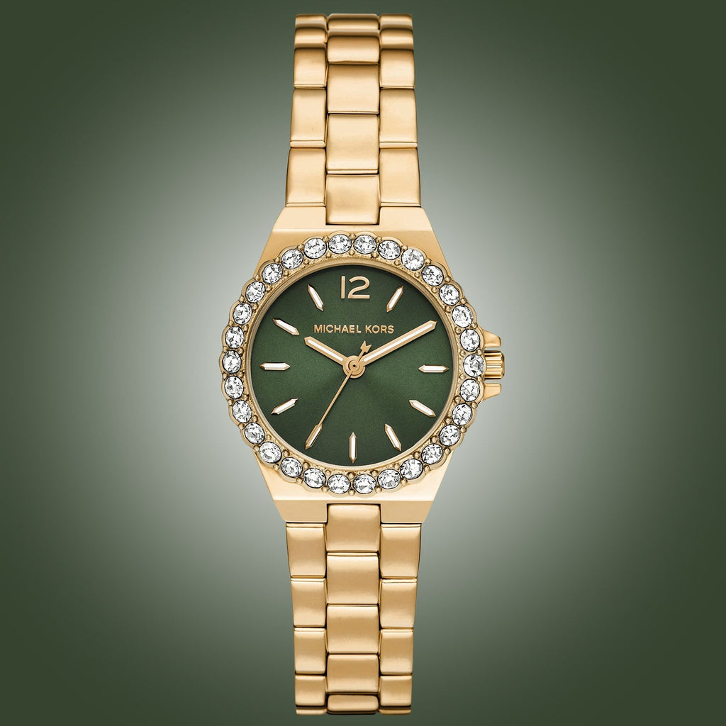 Michael Kors Lennox Quartz Green Dial Gold Steel Strap Watch For Women - MK7395