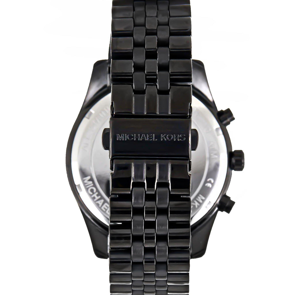 BRAND, SELLER, OR COLLECTION NAME Michael Kors MODEL NUMBER MK8603 PART NUMBER MK8603 MODEL YEAR 2018 ITEM SHAPE Round DIAL WINDOW MATERIAL TYPE Mineral DISPLAY TYPE Analog CLASP Push Button Foldover Clasp With Safety CASE MATERIAL Stainless Steel CASE DIAMETER 44 millimeters CASE THICKNESS 13 millimeters BAND MATERIAL Stainless Steel BAND LENGTH Men’s Standard BAND WIDTH 22 millimeters BAND COLOR Black DIAL COLOR Black BEZEL MATERIAL Stainless Steel BEZEL FUNCTION Stationary CALENDAR Date ITEM WEIGHT 5.76 Ounces MOVEMENT Quartz