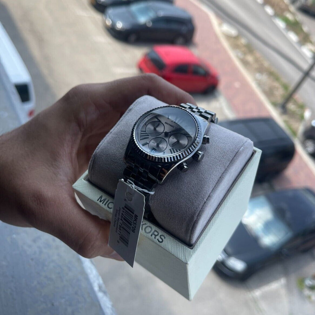 Michael Kors Chronograph Black Dial Watch MK5709 has a stainless steel case and is powered by a chronograph quartz movement. It is fitted with a stainless steel bracelet and has a silver dial with silver Roman numerals and hands. The watch has a date function.