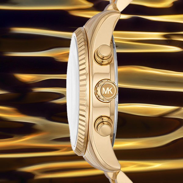Michael Kors Lexington Chronograph Blue Dial Gold Steel Strap Watch For Women - MK7216