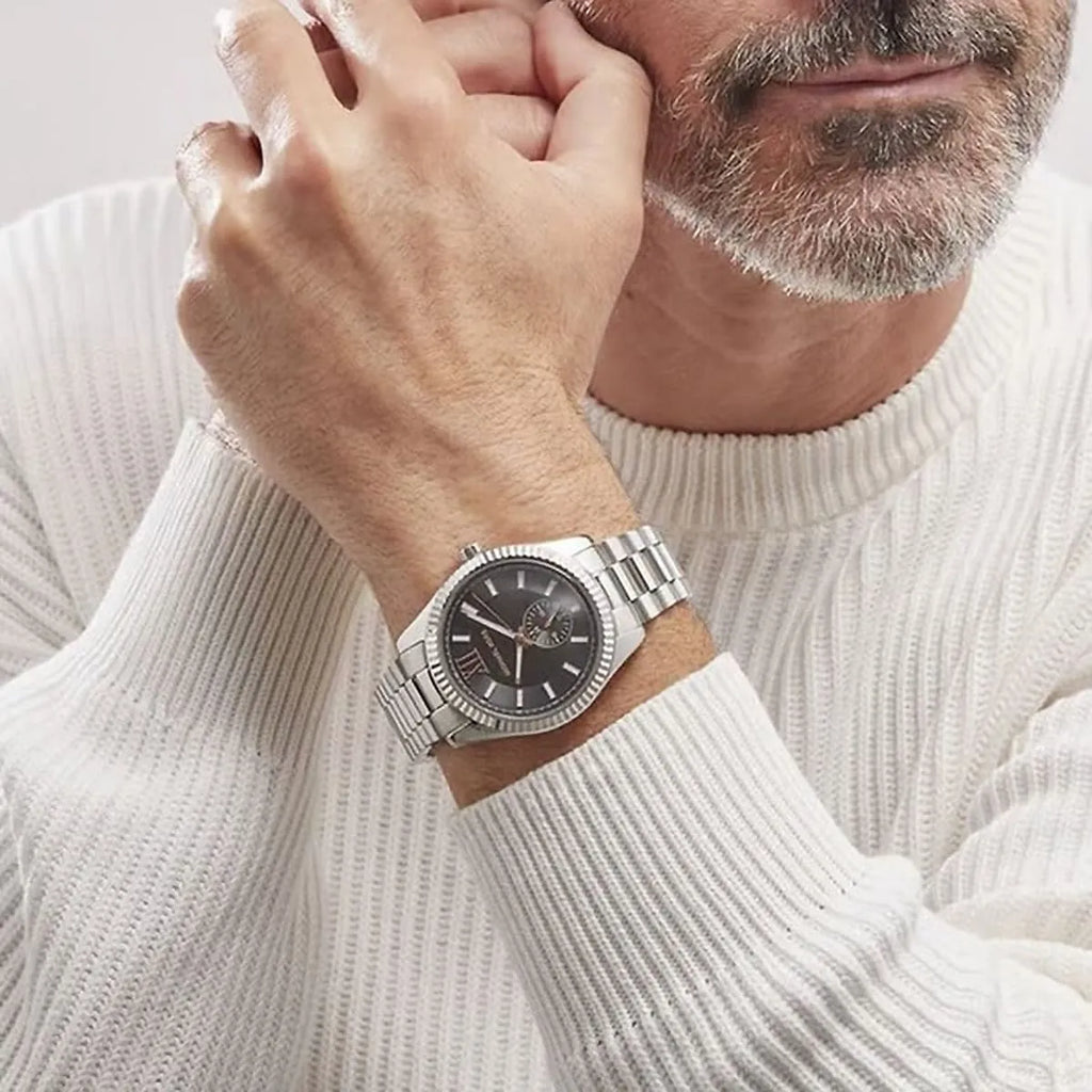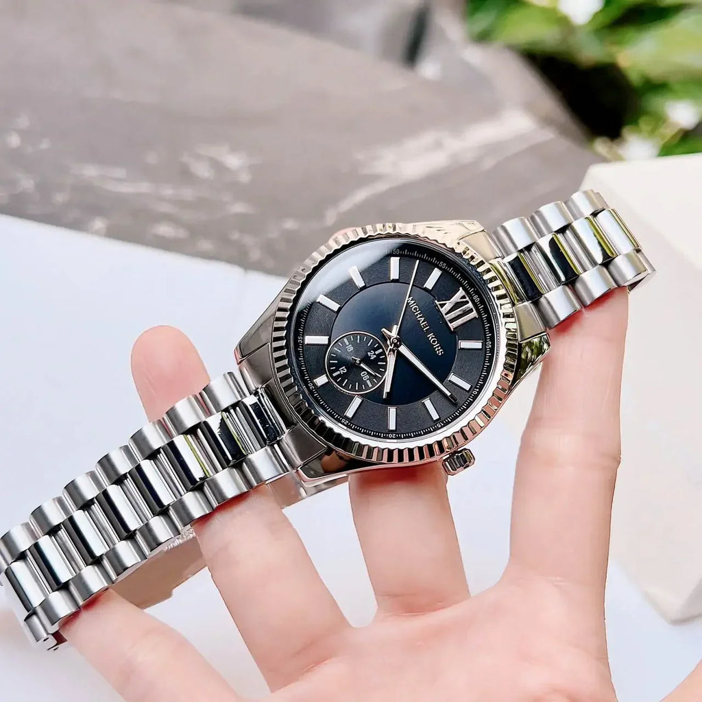 Introducing the Michael Kors Lexington Quartz Black Dial Silver Steel Strap Watch for Women - MK8946, featuring a sleek black dial and silver steel strap. With precision quartz movement and a sophisticated design, this watch is the perfect accessory for any professional or formal setting. Experience the elegance and reliability of Michael Kors.