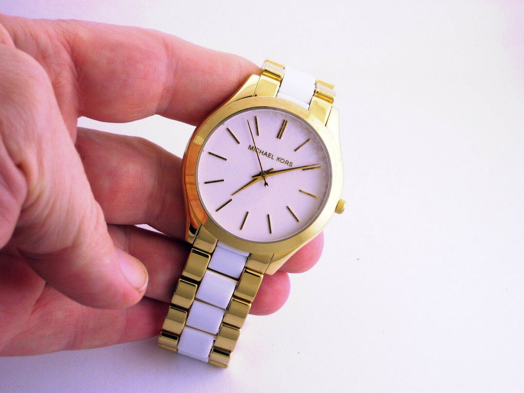 Michael Kors Runway MK4295 is a beautiful and eye-catching Ladies watch . Case material is PVD Gold plated, which stands for a high quality of the item and the White dial gives the watch that unique look