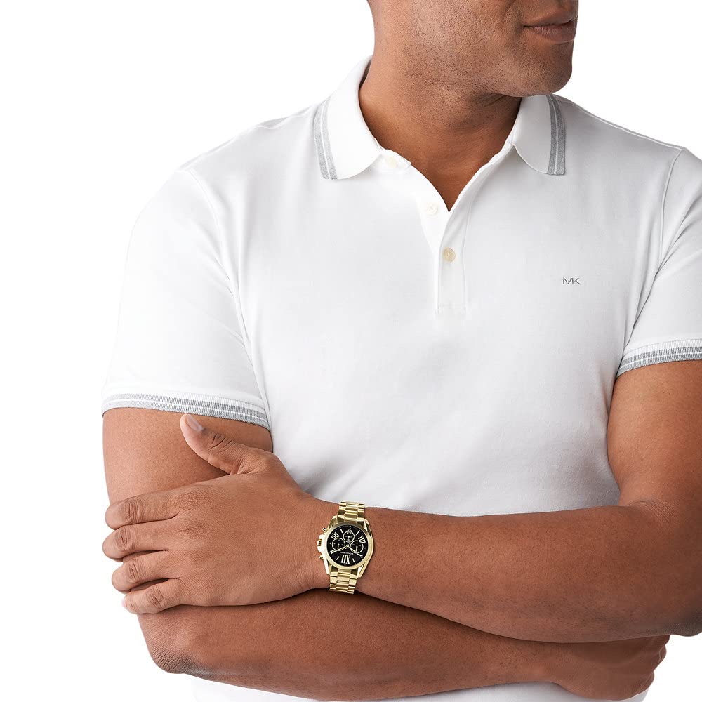 The combination of black and gold makes the Ladies Michael Kors Bradshaw Chronograph Watch a real eye-catcher, with the black dial featuring hour baton markers and Roman numerals, along with gold-toned hands. The rest of the watch is all gold, so if you’re after a touch of bling, you’ve come to the right place.