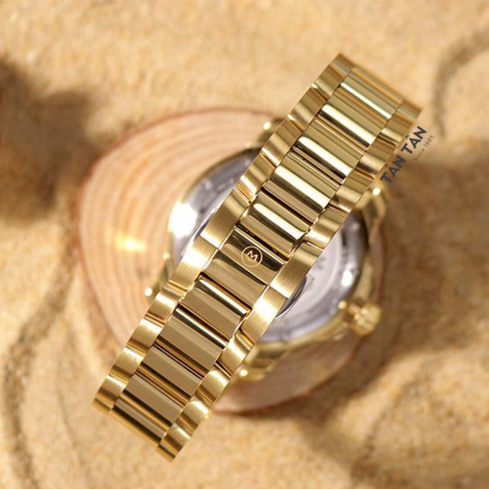 Movado Mens Series 800 Gold Stainless Steel Quartz Black Dial Gold Case Gold Steel Bracelet Watch