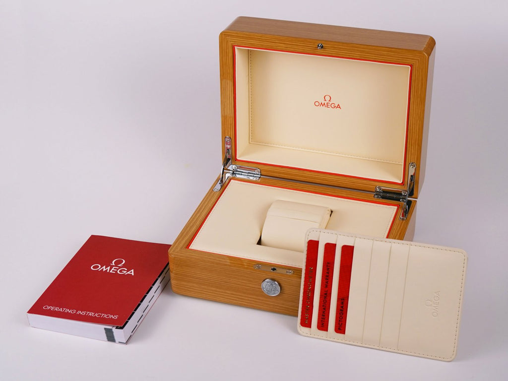 - Powered by the Omega calibre 4061 quartz movement with "Long Life" feature.