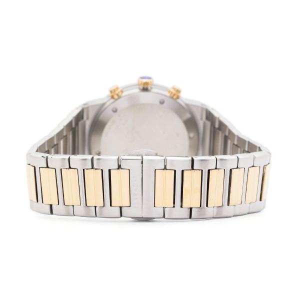 This Salvatore Ferragamo watch features a luxurious two tone steel strap and a striking green dial with a sapphire crystal. The Sapphire Chrono design offers precise timekeeping and a bold, sophisticated style. Elevate your look with this expertly crafted timepiece.