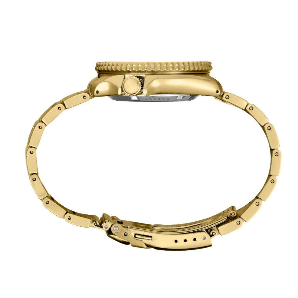 Seiko 5 Sports Automatic Black Dial Gold Steel Strap Watch For Men - SRPK18