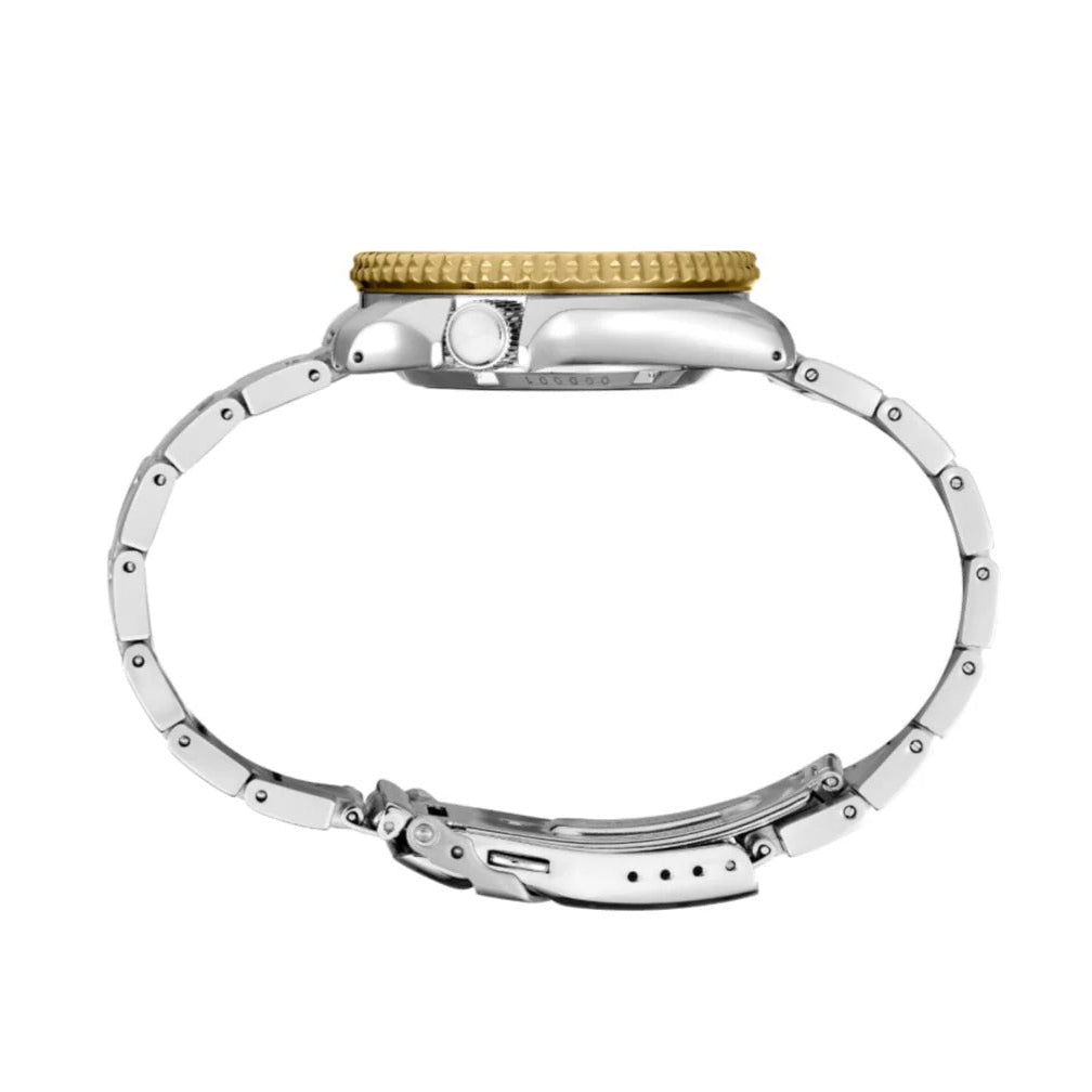 - Bracelet: Stainless steel bracelet with secure fold-over clasp and diver's extension