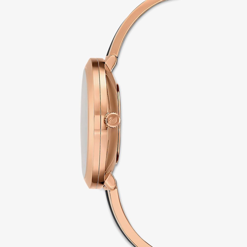 Effortlessly chic, this easy-to-wear Swarovski watch is adorned with iconic Crystalline sparkle. The modern dial and elegant rose gold-tone PVD-coated stainless steel case are set with approximately 1,000 black crystals, which sparkle with a fresh light. The jewellery-inspired bracelet, also crafted in rose gold-tone PVD-coated stainless steel, is finished with a minimalist design in polished black enamel. The perfect accessory to style this season and beyond, the watch is Swiss-made and water-resistant to 50m. Adjustable links ensure it will fit any wrist size.