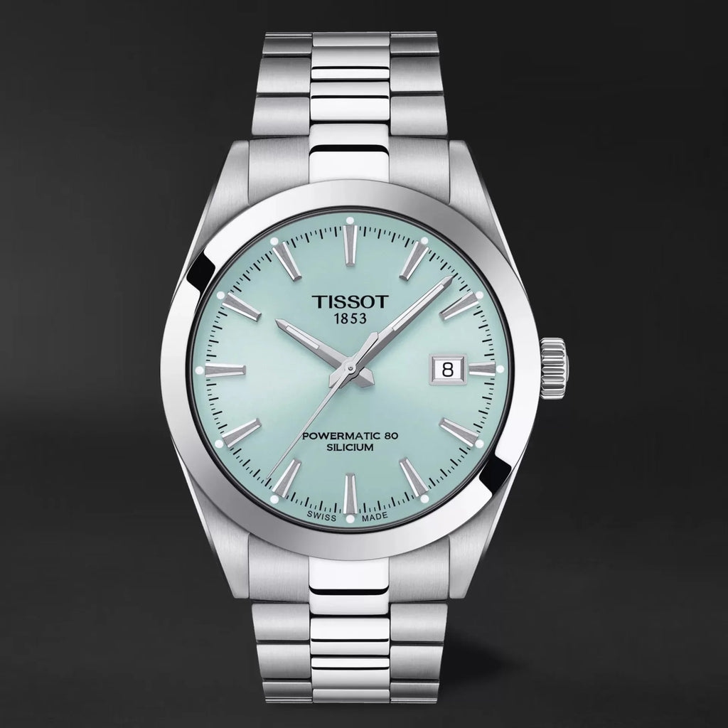 Tissot Gentleman Powermatic 80 Silicium Ice Blue Silver Steel Strap Watch For Men - T127.407.11.351.00