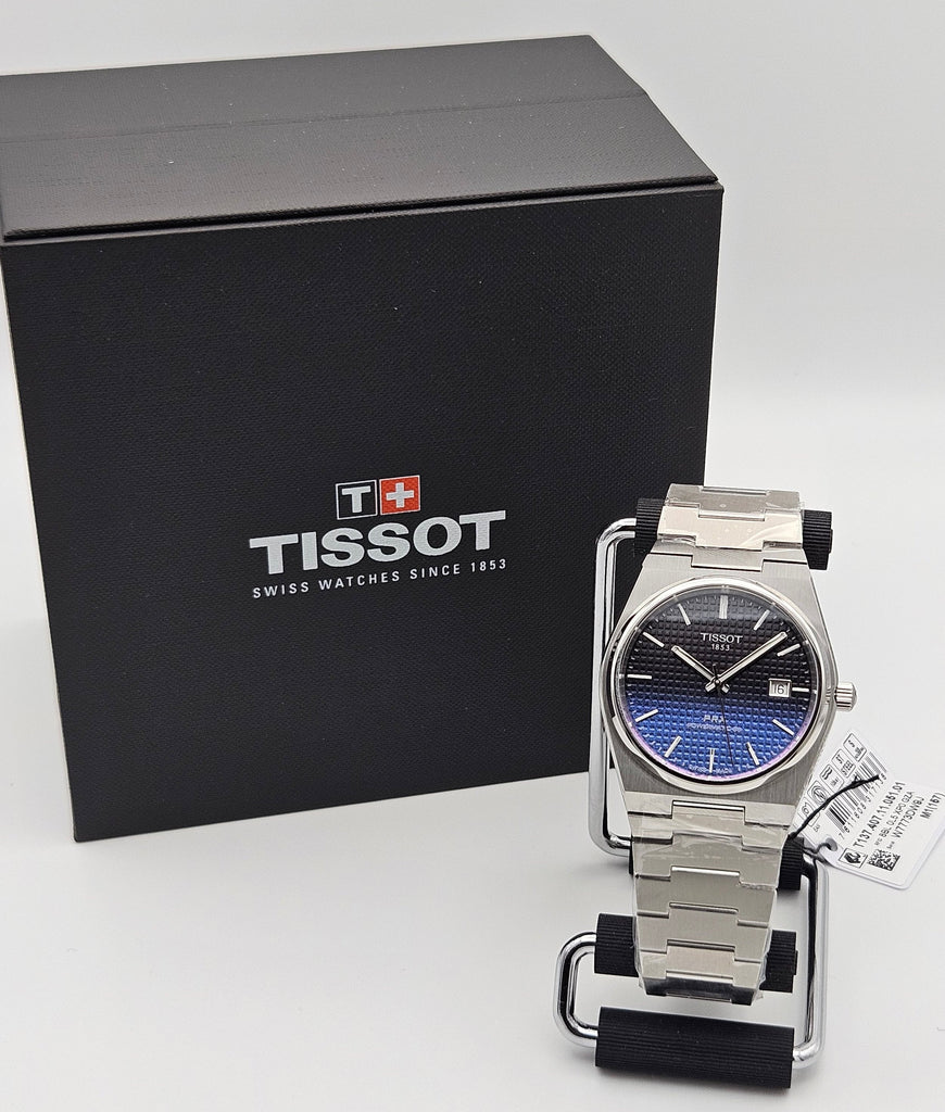 Introducing the TISSOT PRX Powermatic Gradient Blue Dial Men's Watch, the perfect accessory for any stylish man. This watch boasts a sleek design with a stunning gradient blue dial, powered by a highly efficient Powermatic movement. Enhance your style and stay on time with this high-quality watch.