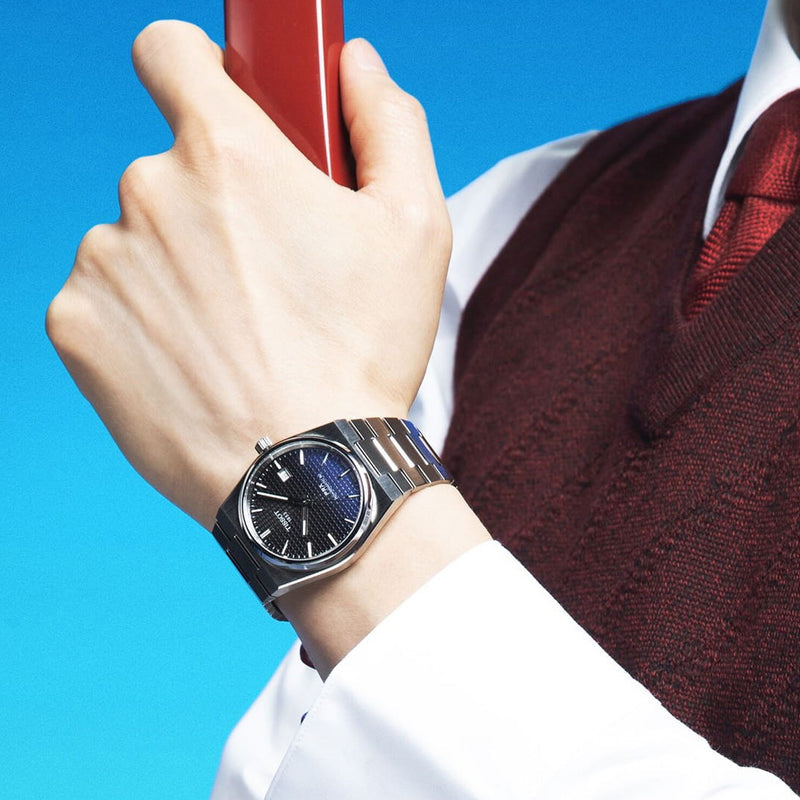 This 40mm extension of the PRX Powermatic 80 showcases a captivating gradient dial that shifts with light and color, creating a visually stunning effect. This vibrant color scheme breaks free from the ordinary, evoking the mesmerizing hues of dusk and dawn. Ideal for those setting out to conquer new horizons, this PRX model is the perfect blend of sophistication and functionality for urban professionals who value both style and substance.