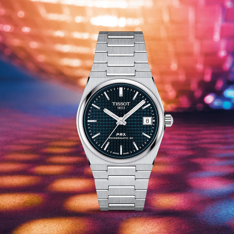 Introducing the Tissot PRX 35mm Powermatic 80, a perfect balance of timeless appeal and modern craftsmanship. This 35mm watch boasts a high-quality steel case and a captivating blue dial, inspired by its renowned 1978 predecessor. The distinctive waffle dial pattern adds an extra layer of elegance to the automatic model. Water-resistant up to 100 meters and featuring a Nivachron™ balance hairspring, the PRX is an ideal choice for style-savvy individuals. The satin-finish steel bracelet with a triple-blade folding steel clasp guarantees all-day comfort. Stand out with the Tissot PRX 35mm Powermatic 80 in blue.