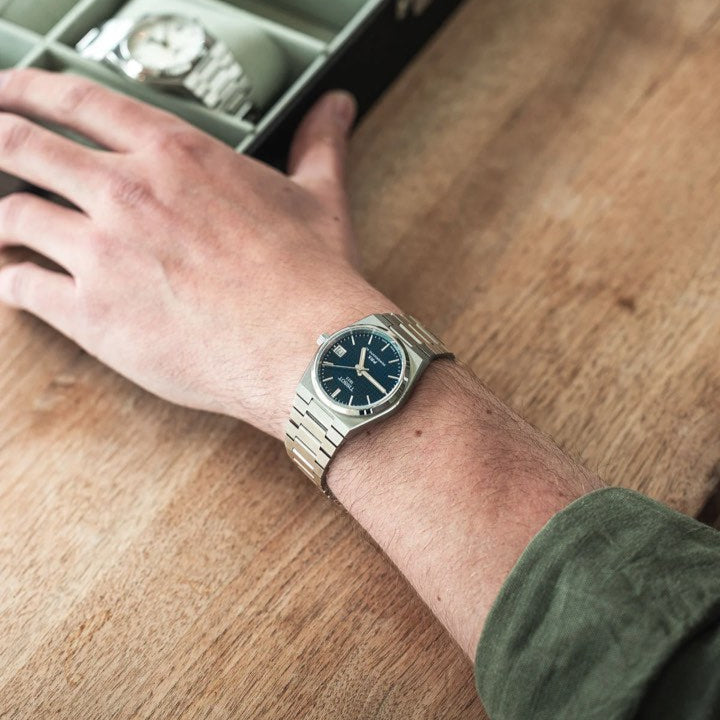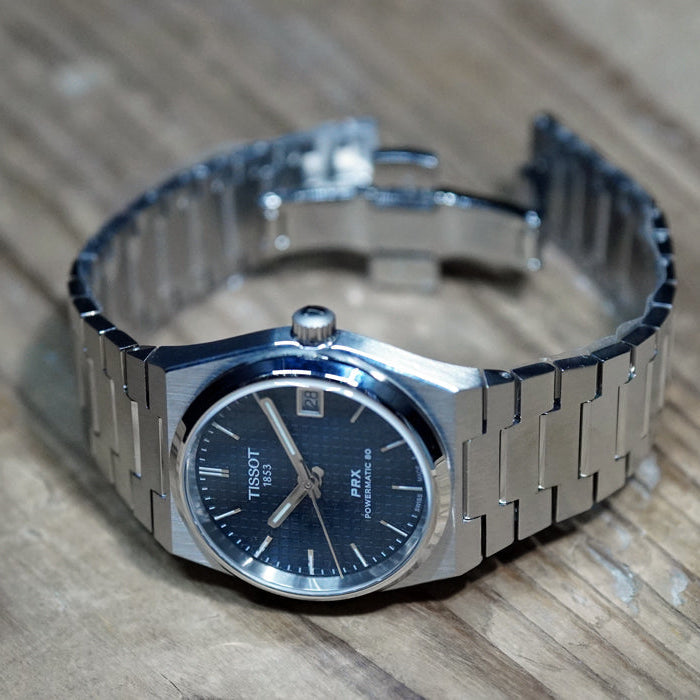 Indulge in luxury with the Tissot PRX "Powermatic 80" watch. Its 35mm blue dial boasts timeless sophistication, while the Powermatic 80 feature ensures precise timekeeping. Elevate your style and stay punctual with this exquisite timepiece.