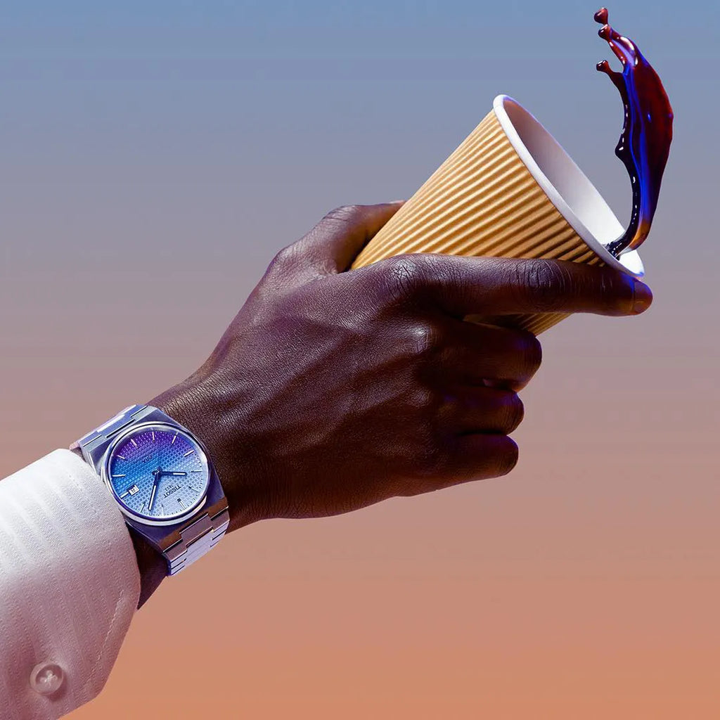 Part of the T-CLASSIC Collection, the PRX Series from the Tissot Watch Brand has sleek , smooth designs inspired by 1970's style, with modern innovations. The PRX Powermatic 80, (just as implied in its namesake) is a Swiss Automatic movement with an impressive 80-hour power reserve viewable behind an exhibition case-back. Model #T137.407.11.351.01 features an ice blue gradient reflective raised waffle pattern textured dial.