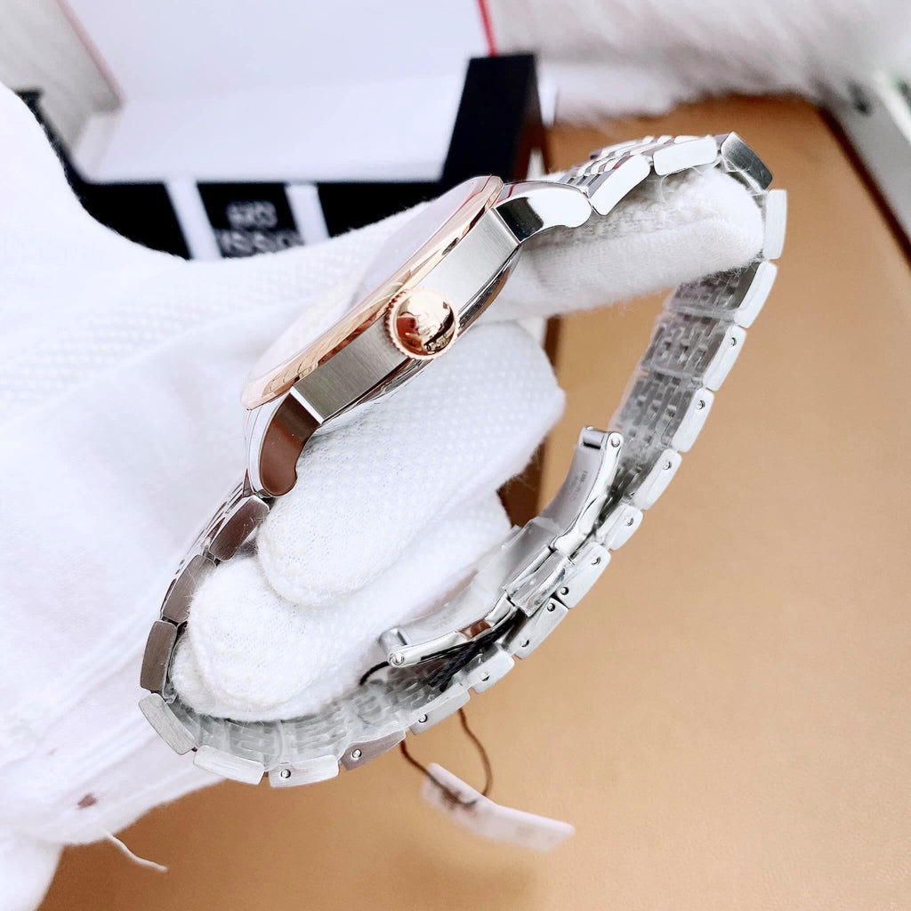 Le Locle is the name of Tissot's home town, the cradle of the watchmaking industry, which expresses the values of traditional craftsmanship. This range of Tissot Le Locle welcomes beautiful new timepieces that bear the revolutionary Powermatic 80 movement, which allows them to offer up to 80 hours of power reserve. Within the realm of Tissot's emblematic watches, this new version embodies sophistication with dials featuring as indices Roman numerals and Wesselton diamonds. The see-through case-back is engraved with a traditional Le Locle signature to complete the picture of classical chic.