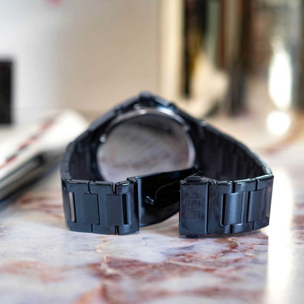 Designed for the modern man, the Tommy Hilfiger Justin Chronograph watch features a sleek blue dial and blue steel strap. Its precise chronograph function and durable design make a stylish addition to any wardrobe. Timekeeping has never been so effortless with this expertly crafted timepiece.