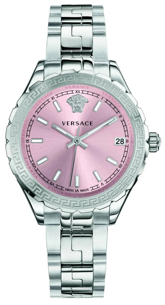 Pink Dial - Stainless Steel Luminous Markers and Hands - Date Window at 3 O'Clock - Versace Medusa Logo at 12 O'Clock