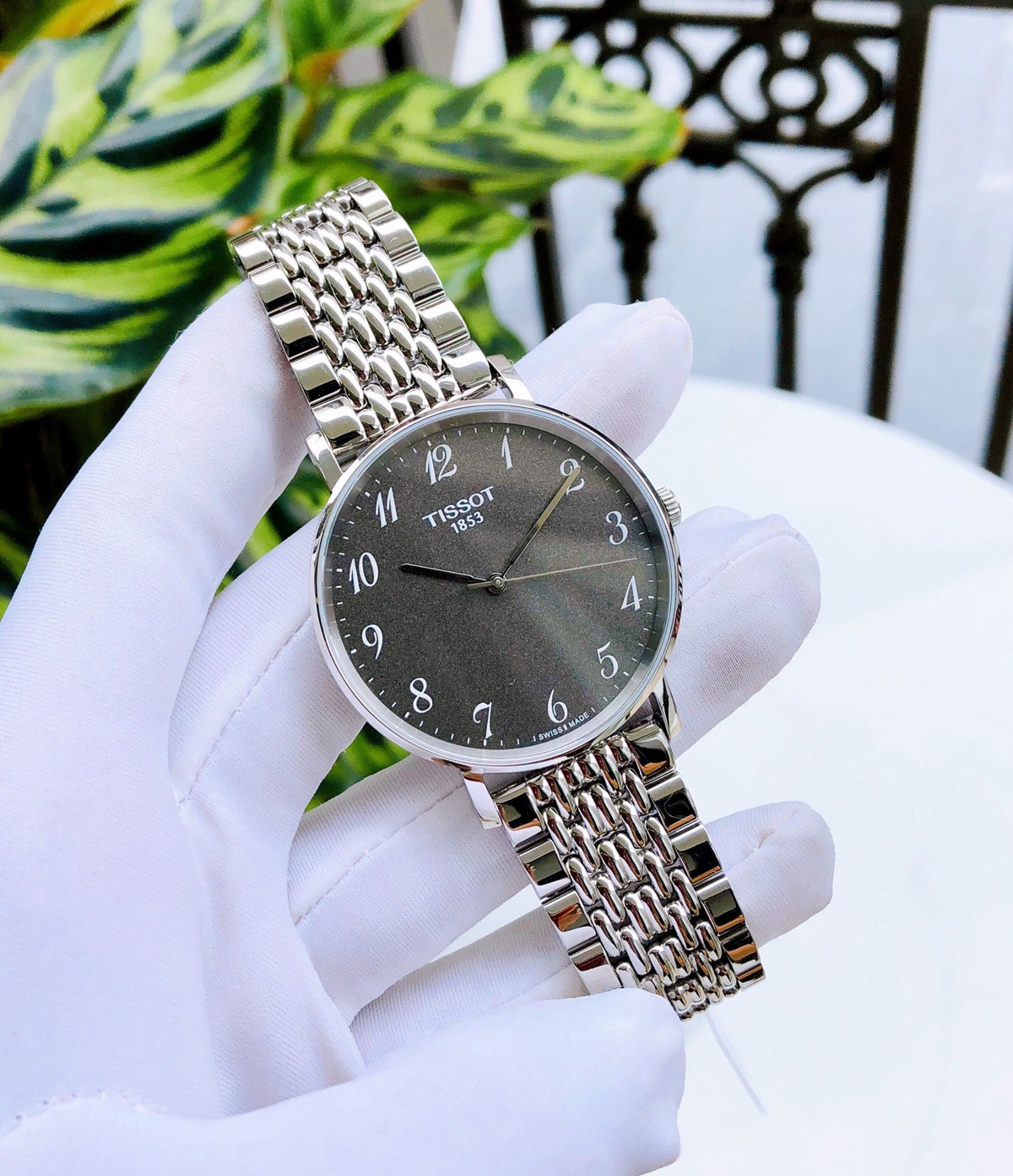 Tissot T Classic Everytime Quartz Black Dial Silver Steel Strap Watch for Men - T109.410.11.072.00