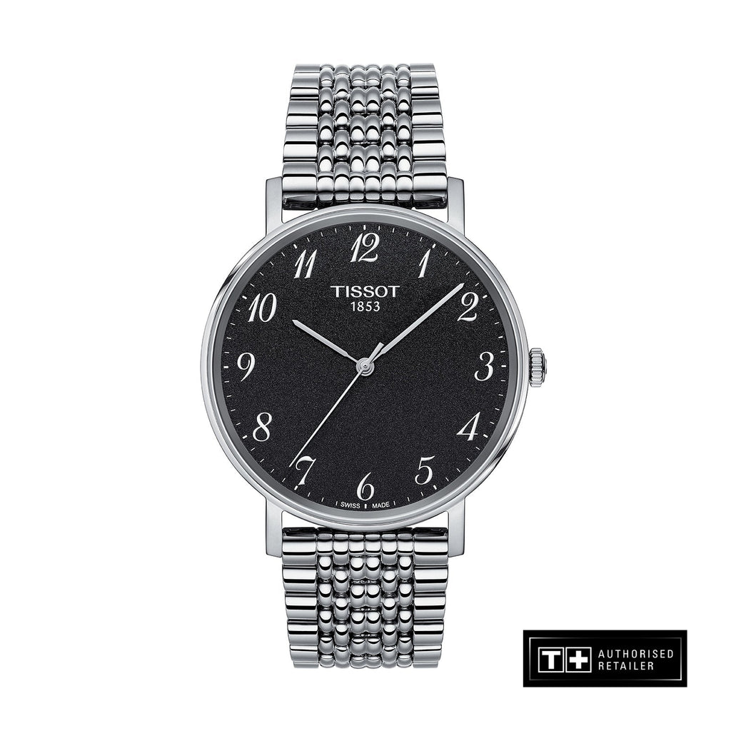 Tissot T Classic Everytime Quartz Black Dial Silver Steel Strap Watch for Men - T109.410.11.072.00