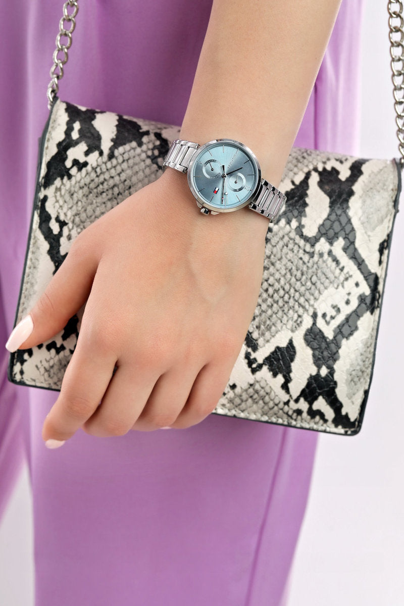 Tommy Hilfiger Angela Blue Dial Silver Steel Strap Watch for Women - 1782126