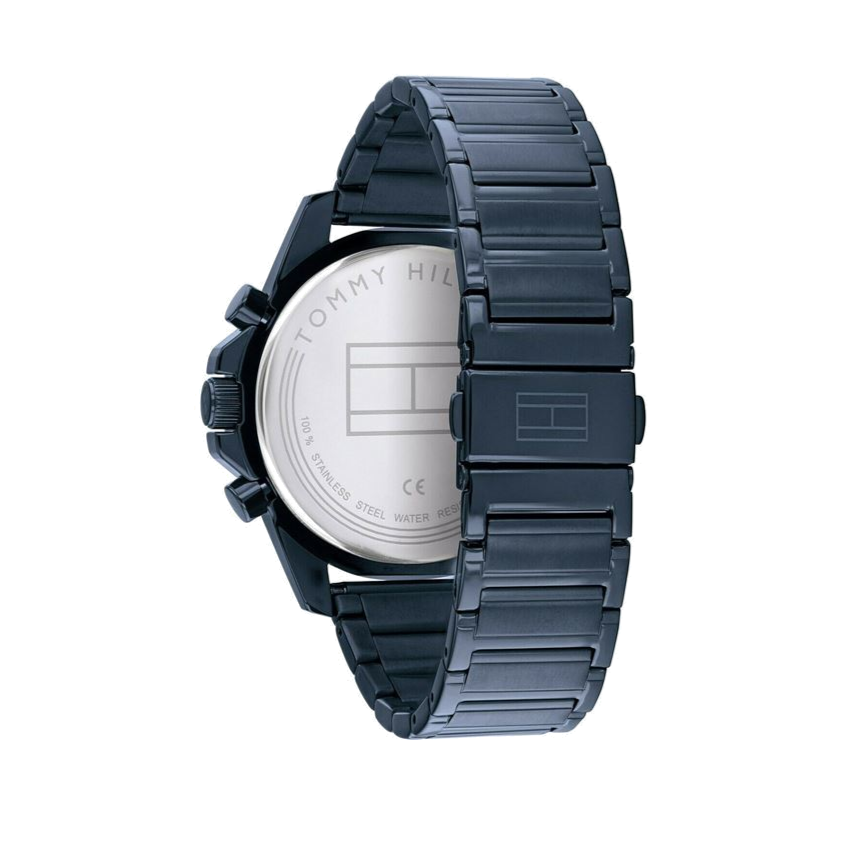 Tommy Hilfiger Decker Chronograph Blue Dial Men's Watch 1791560 is a functional and handsome Gents watch from Decker collection. Case material is Blue Ion-Plated Steel while the dial colour is Blue. 50 metres water resistance will protect the watch and allows it to be submerged in water for periods, so can be used for swimming and fishing. It is not recommended for high impact water sports.