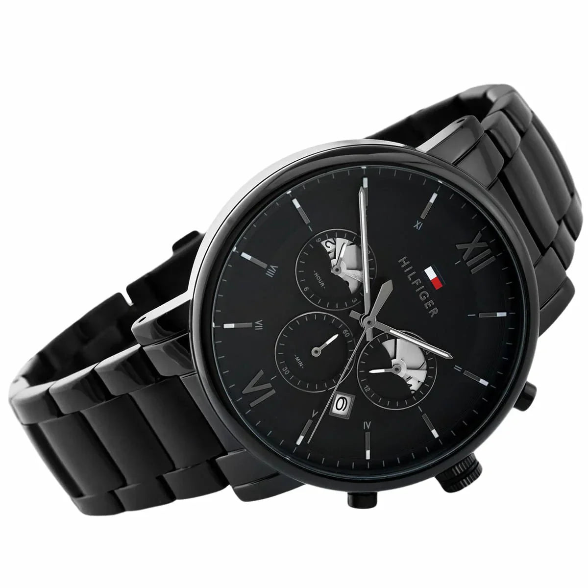 Experience style and functionality with the Tommy Hilfiger Evan Chronograph Watch. Boasting a sleek black dial and black steel strap, this quartz watch for men is both durable and sophisticated. Whether dressing up for a formal occasion or adding a touch of class to your everyday look, this timepiece is the perfect addition to any outfit.