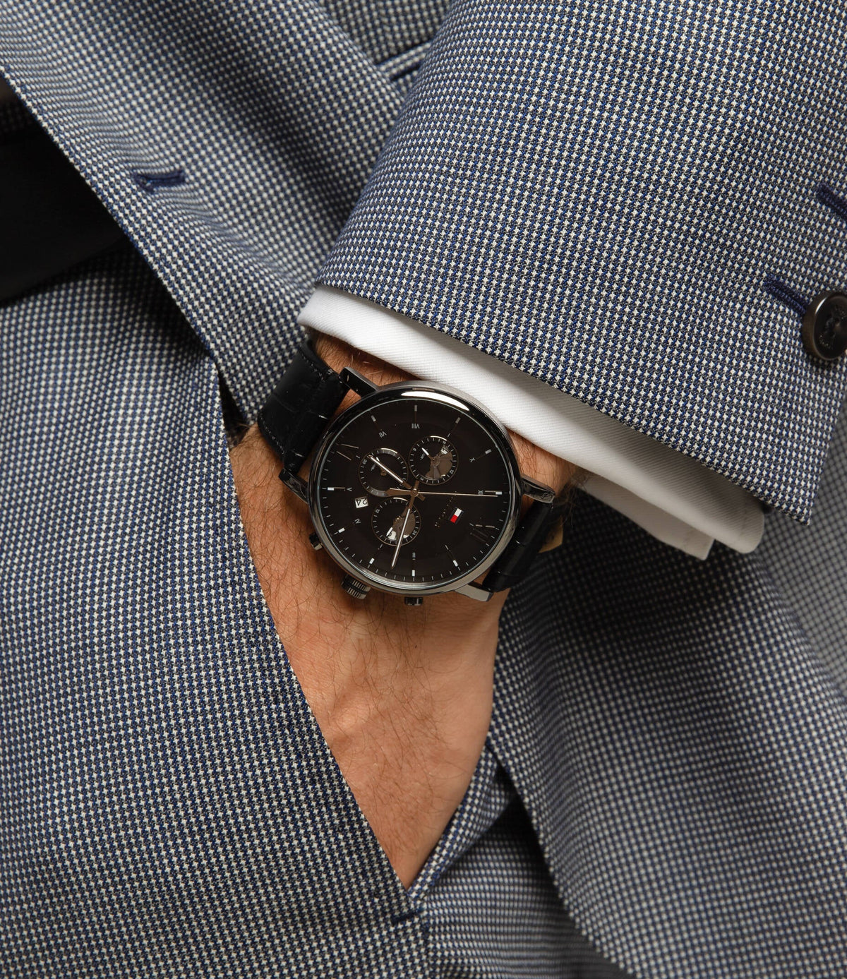 Tommy Hilfiger Evan Black Dial Black Leather Strap Watch for Men - 1710395